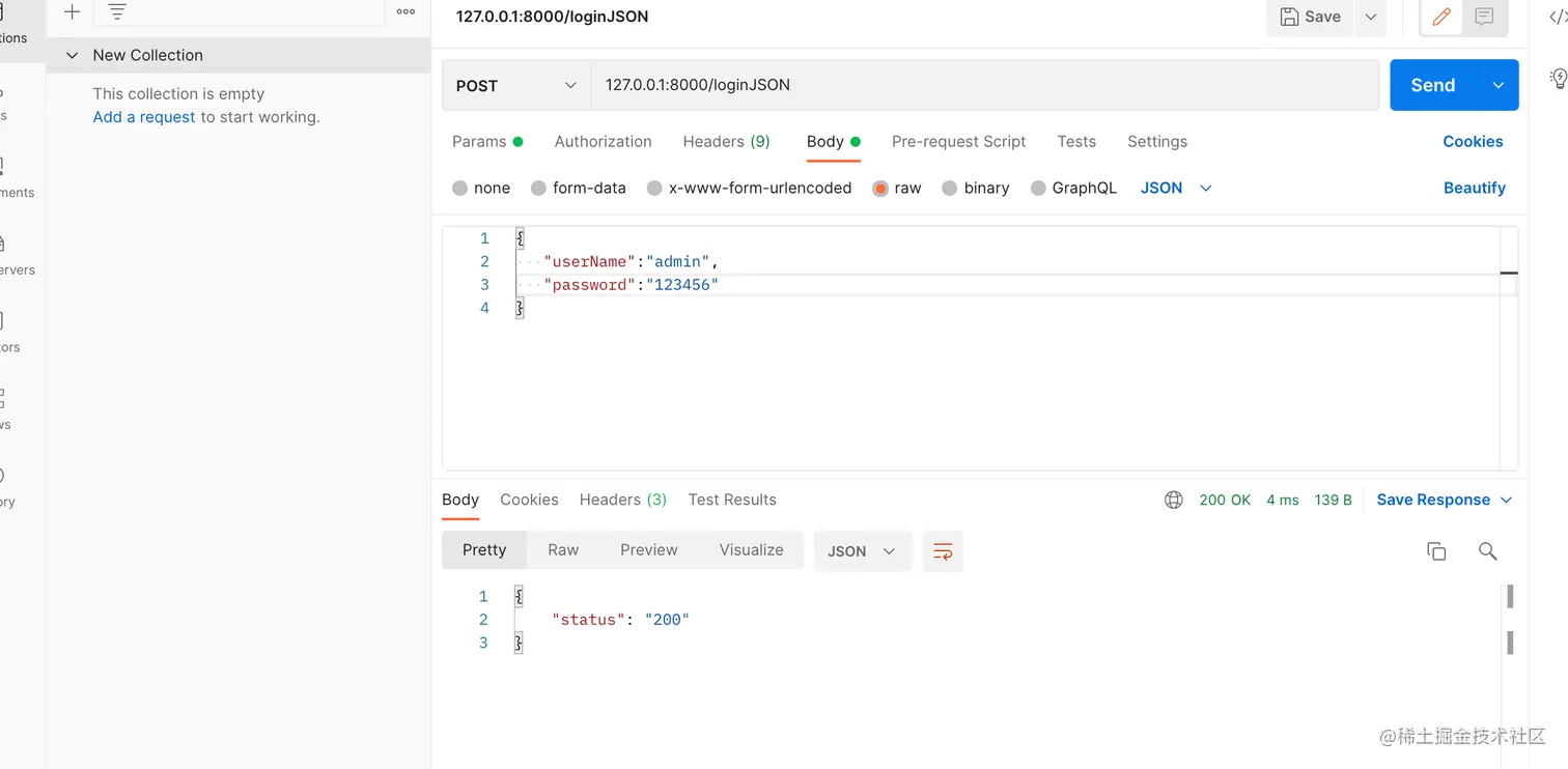 最后我们用postman来测试,输入我们的接口,参数,发起请求就可以看到我们得到的结果就是我们写的。