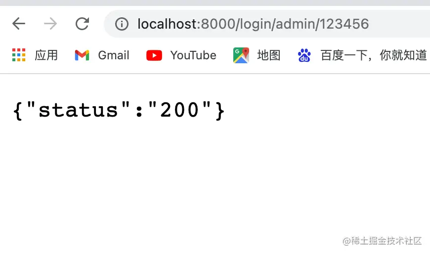 //uri绑定r.GET("/:user/:password", func(c *gin.Context) { // 声明接收的变量 var login Login // Bind()默认解析并绑定form格式 // 根据请求头中content-type自动推断 if err := c.ShouldBindUri(&login); err != nil { c.JSON(http.StatusBadRequest, gin.H{"error": err.Error()}) return } // 判断用户名密码是否正确 if login.User != "admin" || login.Pssword != "123456" { c.JSON(http.StatusBadRequest, gin.H{"status": "304"}) return } c.JSON(http.StatusOK, gin.H{"status": "200"}) })