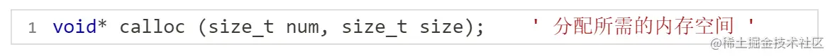 📚 介绍:calloc 函数的功能实为 num 个大小为 size 的元素开辟一块空间,并把空间的每个字节初始化为 0 ,返回一个指向它的指针。