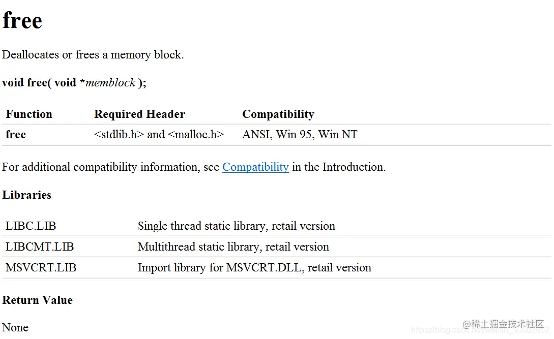② 如果参数 ptr 是 NULL 指针,那么 free 将不会执行任何动作。