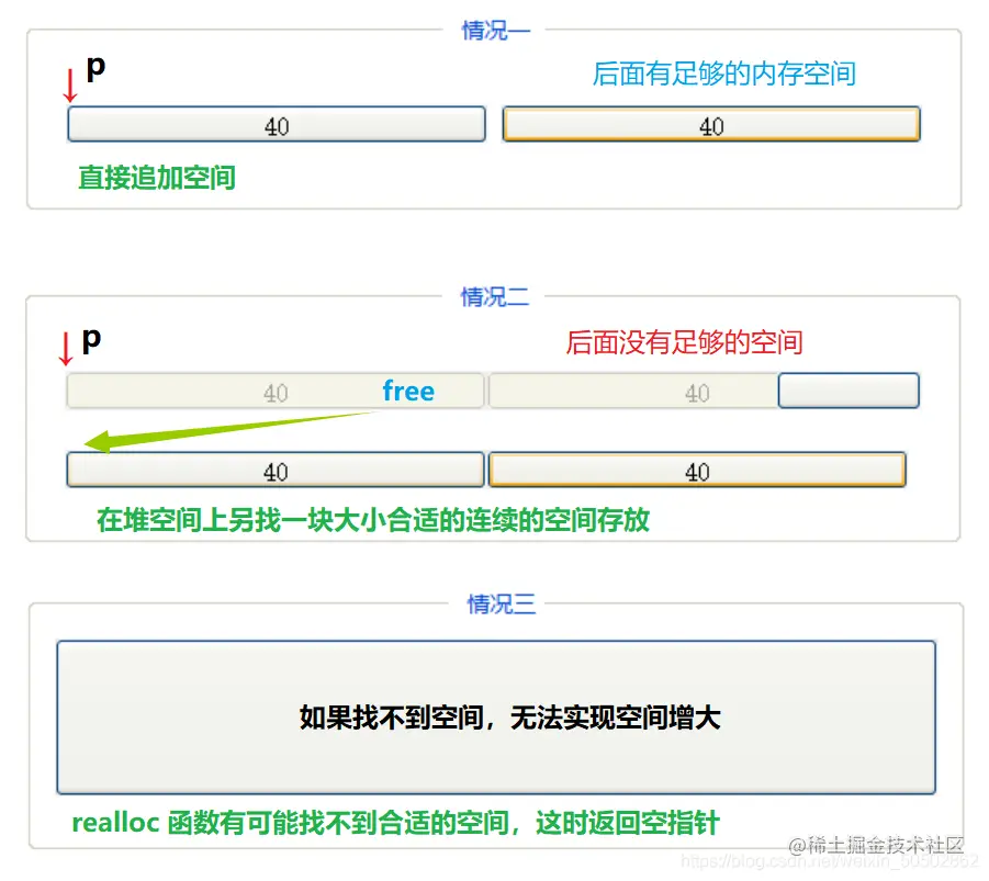 📌 realloc 函数在调整内存空间时存在的三种情况: