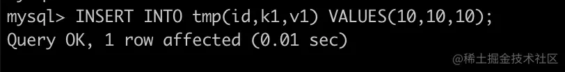 - 在主键索引中做可见性检查,返回(10,10,10)发现与k1值与二次索引一致,证明二次索引数据有效,作为结果返回