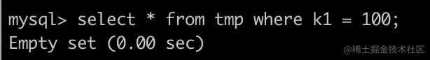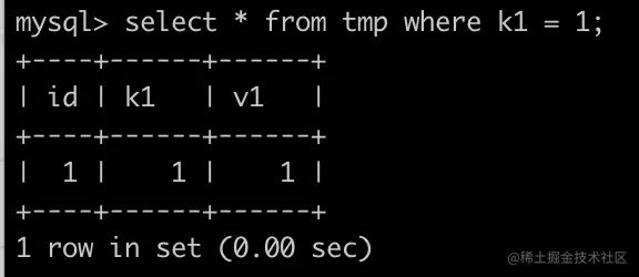 select * from tmp where k1 = 1; | |