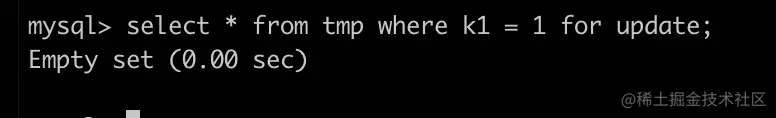 select * from tmp where k1 = 1;select * from tmp where k1 = 1 for update; | select * from tmp; |