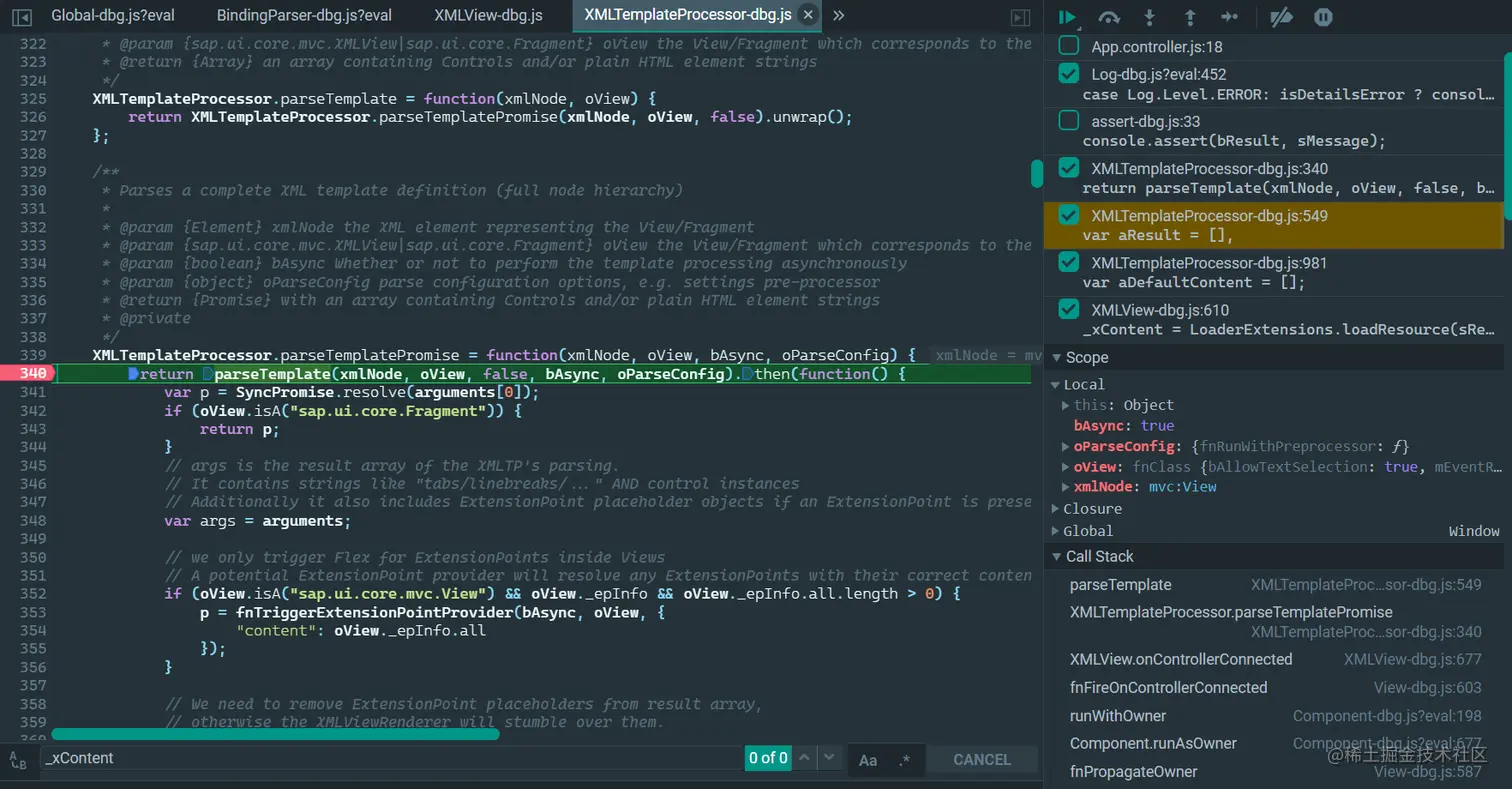 在 XMLView.js 里根据字符串 _xContent 进行搜索,即可查到这个字段赋值的位置: