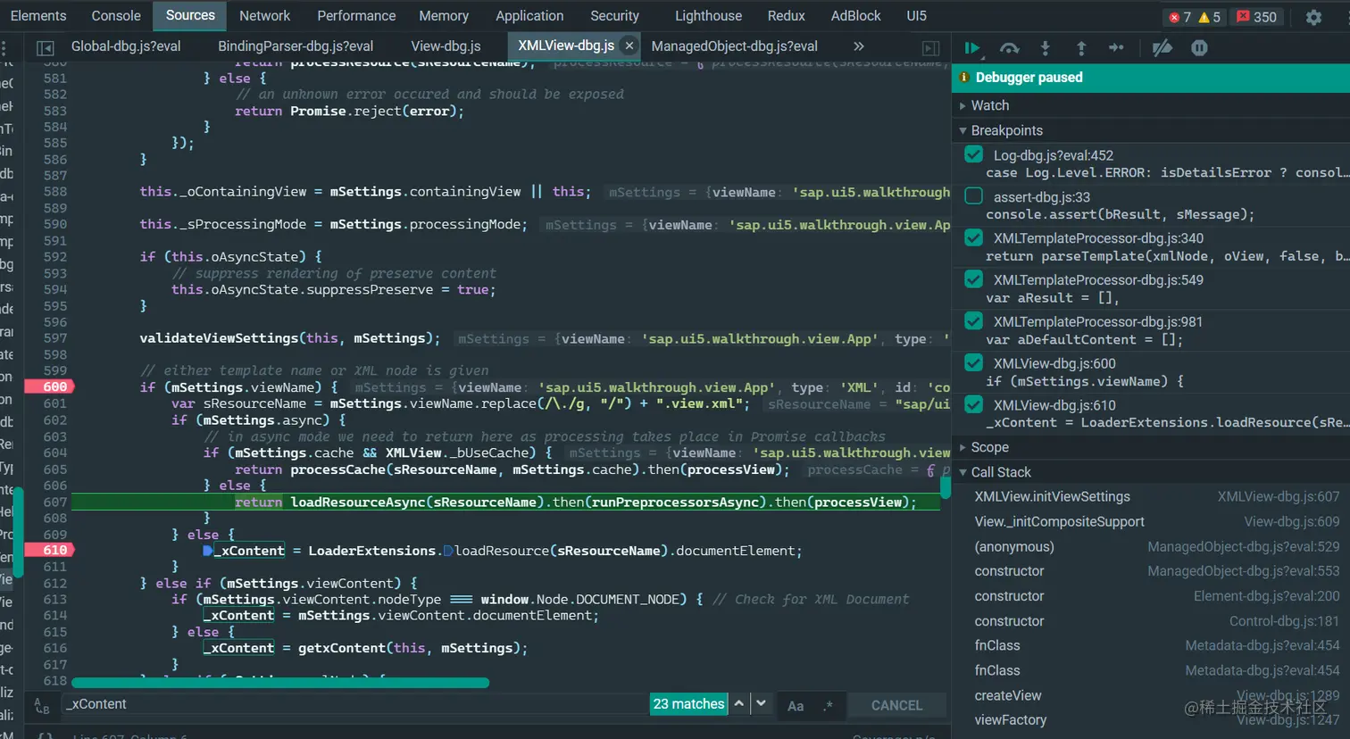 在 XMLView.js 的 this._xContent 字段里,我们能找到 xml 视图的字符串格式的源代码。