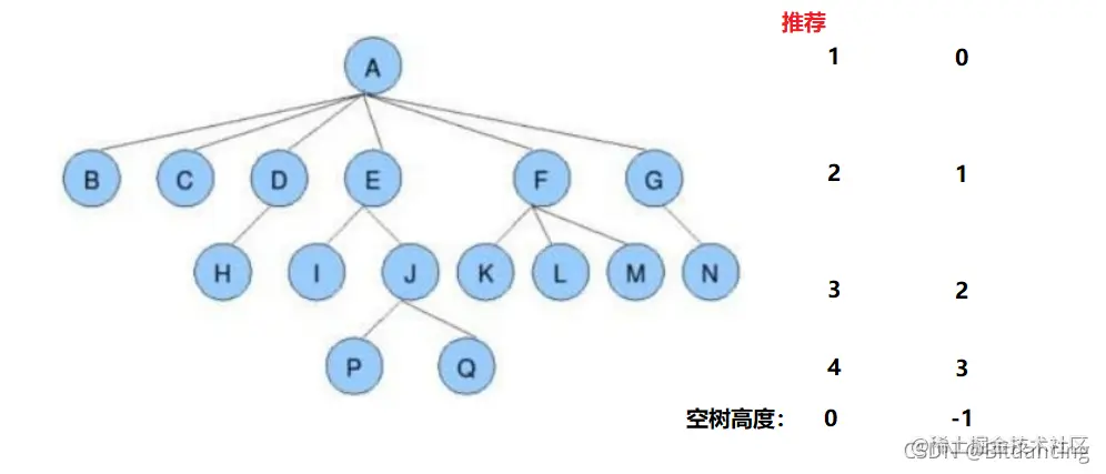 非终端节点或分支节点:度不为0的节点; 如上图:D、E、F、G...等节点为分支节点