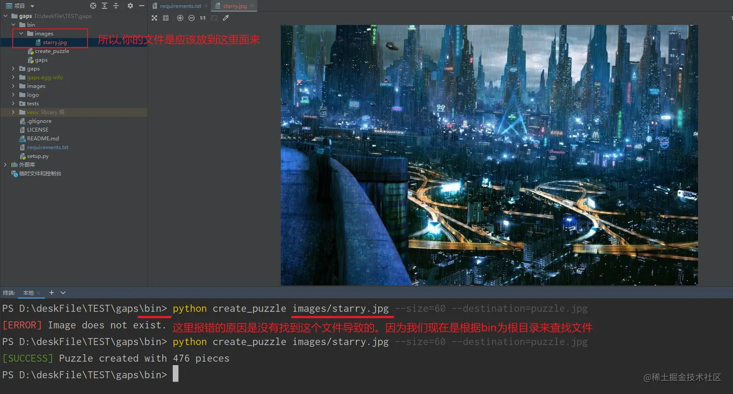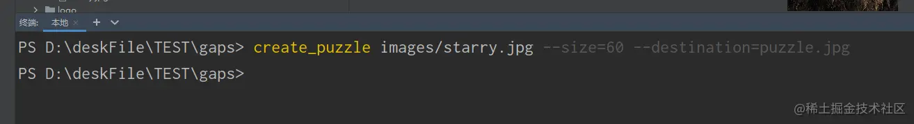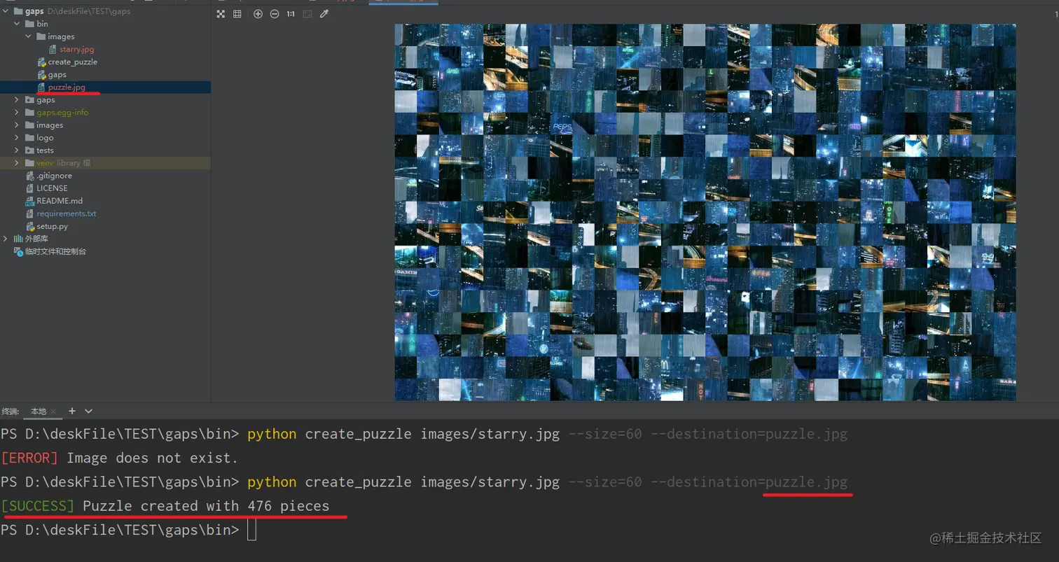 然后我们按照官网的提示来执行,先创建一个拼图出来,命令是这样的(这里的文件名我改了)
