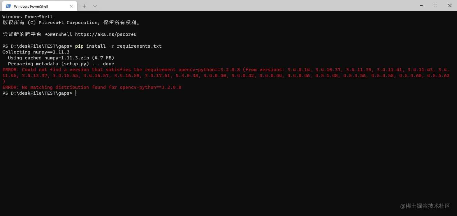 解决方案:单独对requirements.txt文件下的每个包单独下载,然后根据当前下载的包的最新版本替换旧版本号。