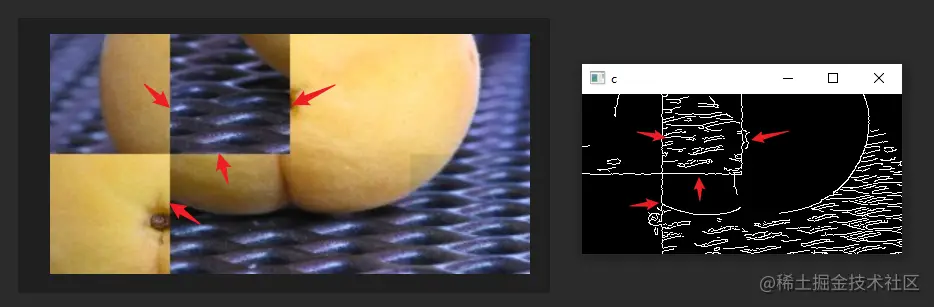 像划红线的这些地方,可以看到边界有明显的突变产生,并且二值化之后边缘趋于直线,但是正常图像是不会有这种这么明显的突变现象。