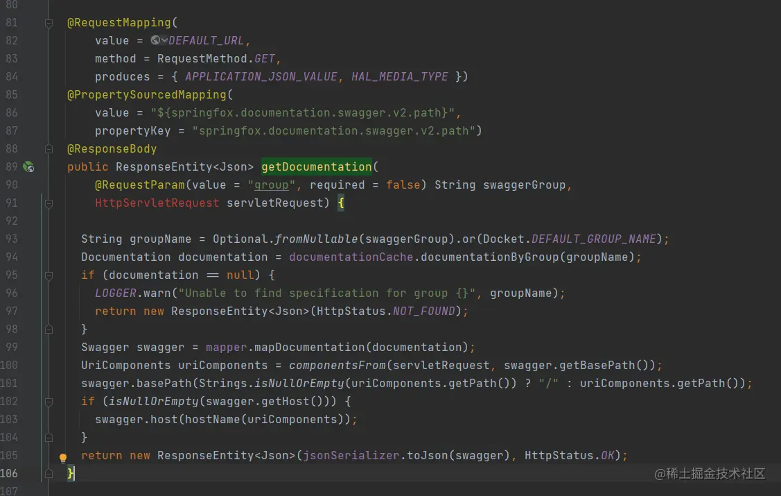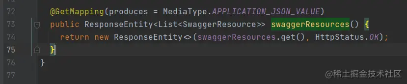 可以看到,该接口仅仅是调用了swaggerResource的get方法,然后就直接返回了,那就再看看swaggerResource是什么东西