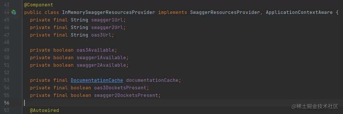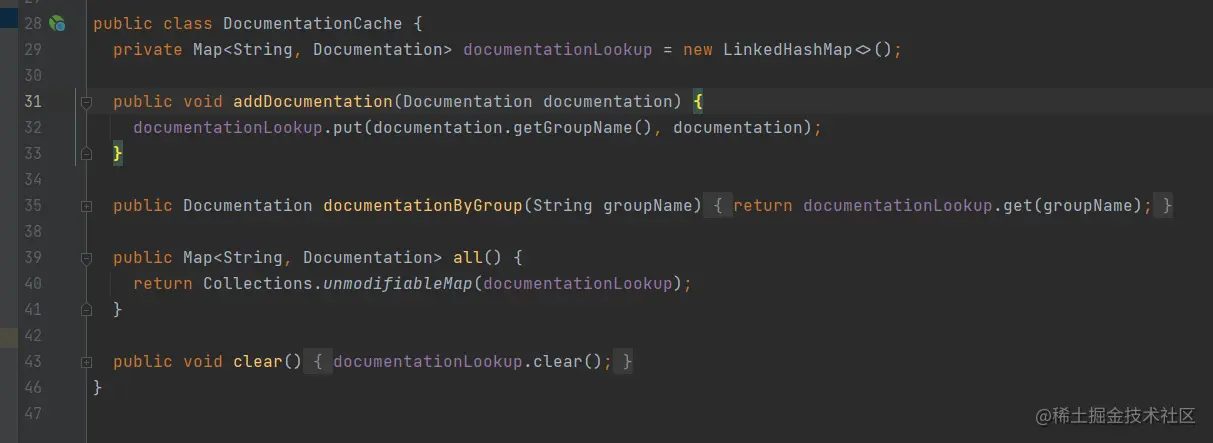 看到这里我不禁陷入了思考,难道要给documentationCache手动填充文档?但是看这个名字就知道是基于内存的东西,要维护CRUD状态似乎有点麻烦,看看这个代码是咋写的