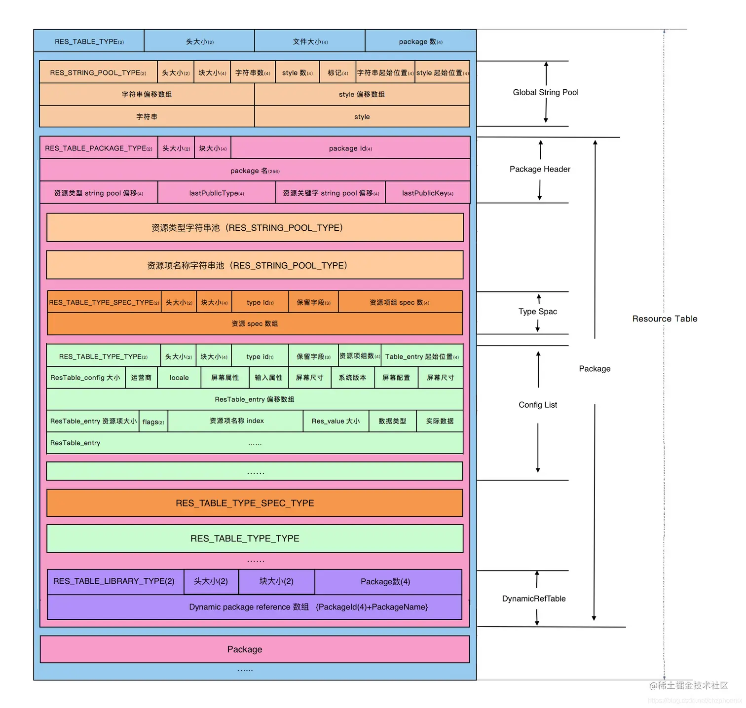 这个RES_TABLE_LIBRARY_TYPE在网上的resource.arsc解析相关文章中几乎没有被提到,而且网上的那张神图中也看不到这个结构。