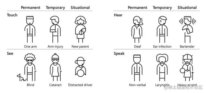 正如Microsoft 包容性设计工具包中的这张图表所示,Flutter 关心提供适应不同永久、临时或情境需求的体验。