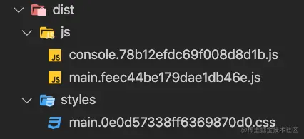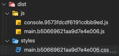 可以看到,每个文件的hash值都不一样,每个文件的hash值都是根据自身的内容去生成的,那我们现在修改一下main.css: