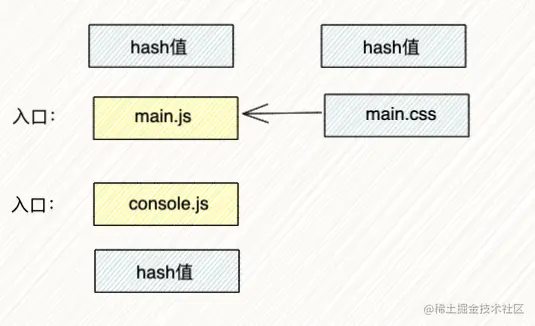 main.css,会导致打包后所有文件的hash值都改变。所以当打包名称设置为hash时,整个项目文件是一致的,修改其中一个会导致所有跟着一起改。