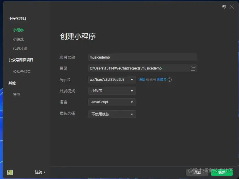- 小程序开发工具会自动在目录下创建四个文件,并自动在