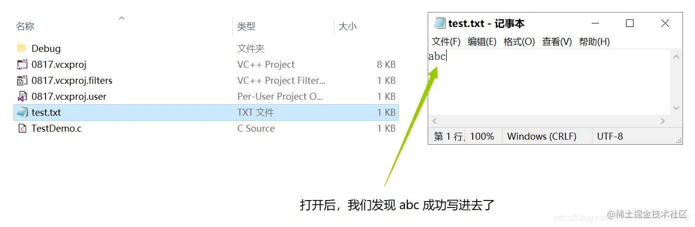 💬 创建一个 test5.txt,用 fwrite 写入一个数据到 text5.txt 中去: