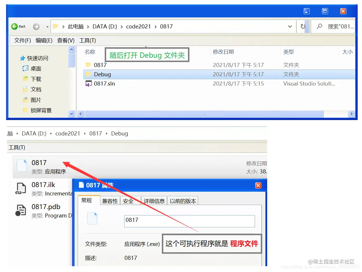 找到代码路径,打开文件夹查看 “可执行程序” :