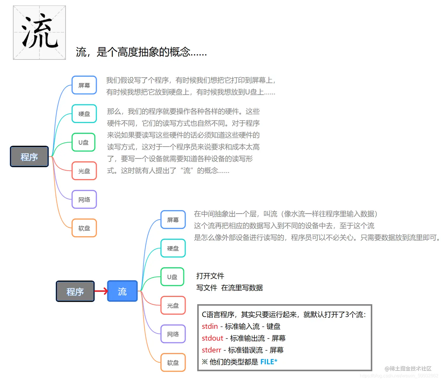 💡 stdout 就是标准输出流,在这里,我们要来讲一下流的概念。