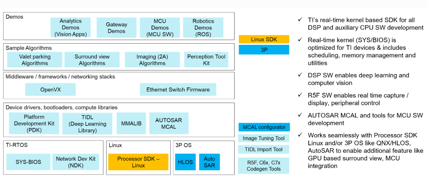 ├── vision_apps 产品层软件,调用SysBIOS,PDK,OpenVX,Algorithms等,实现泊车等应用