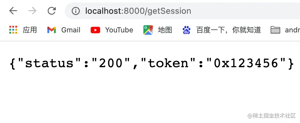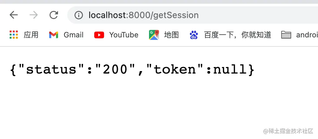 先访问 http://localhost:8080/getSession 获取session测试一下,可以看到