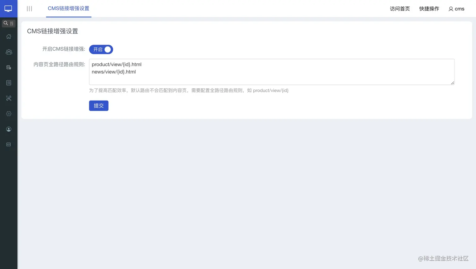 在CMS链接增强设置中,设置原有的内容页面规则。