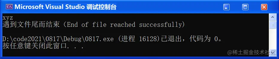 puts("遇到文件尾而结束(End of file reached successfully) ");