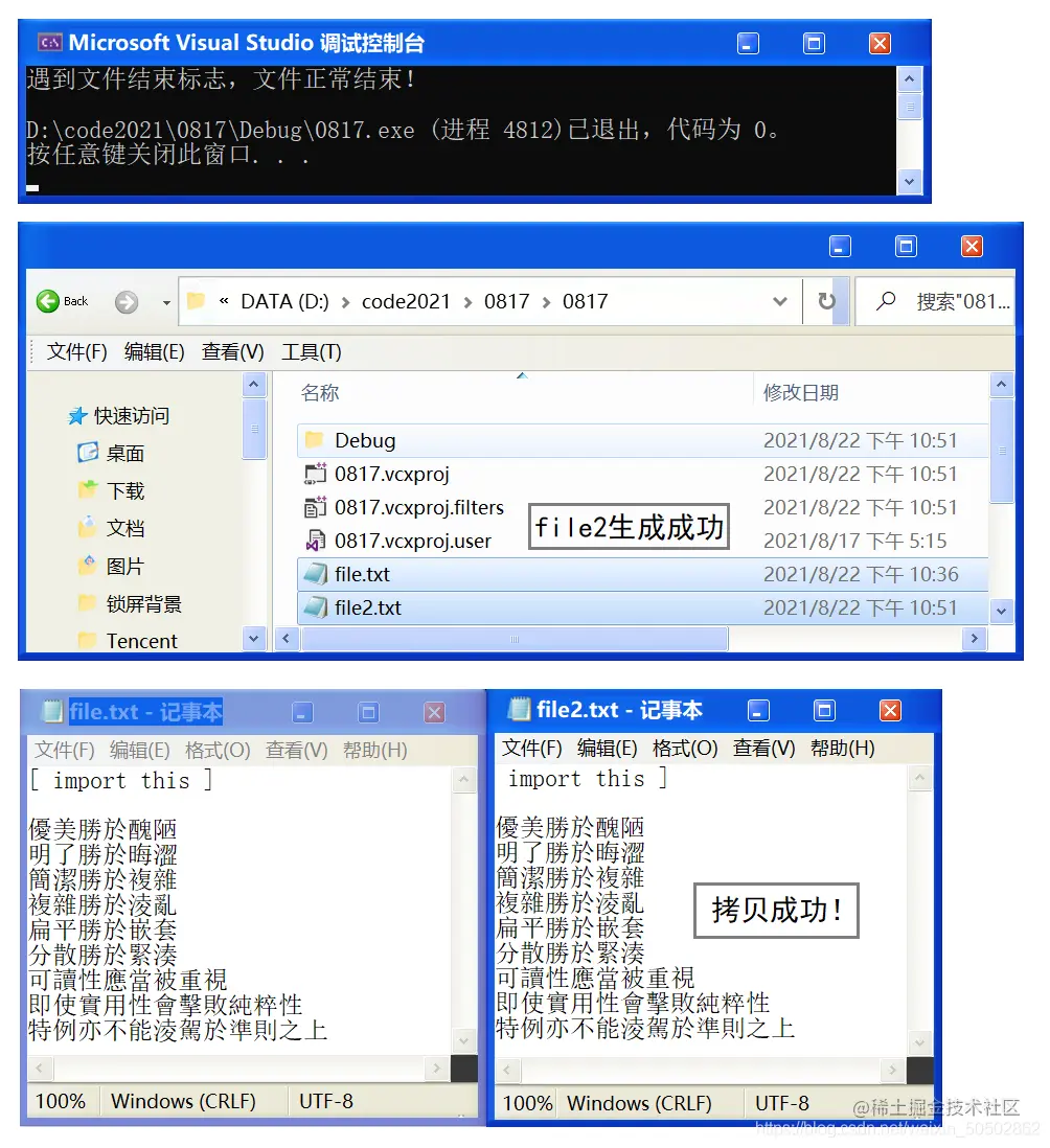 💬 代码演示:在工程路径下手动创建一个叫 file.txt 的文件,在里面随便写几行文字。然后通过代码将 file.txt 文件拷贝一份,生成 file2.txt :