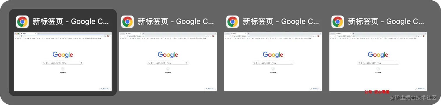 使用快捷键 cmd+ tab 显示窗口预览如图:
