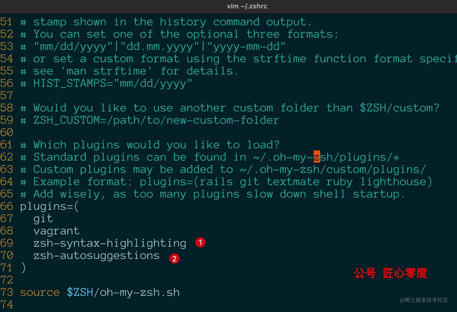 zsh-autosuggestions 【插件】:官网- github.com/zsh-users/z… 👍当输入命令时,会给出建议的命令按键盘 ctrl+e → 补全,效果如下图所示: