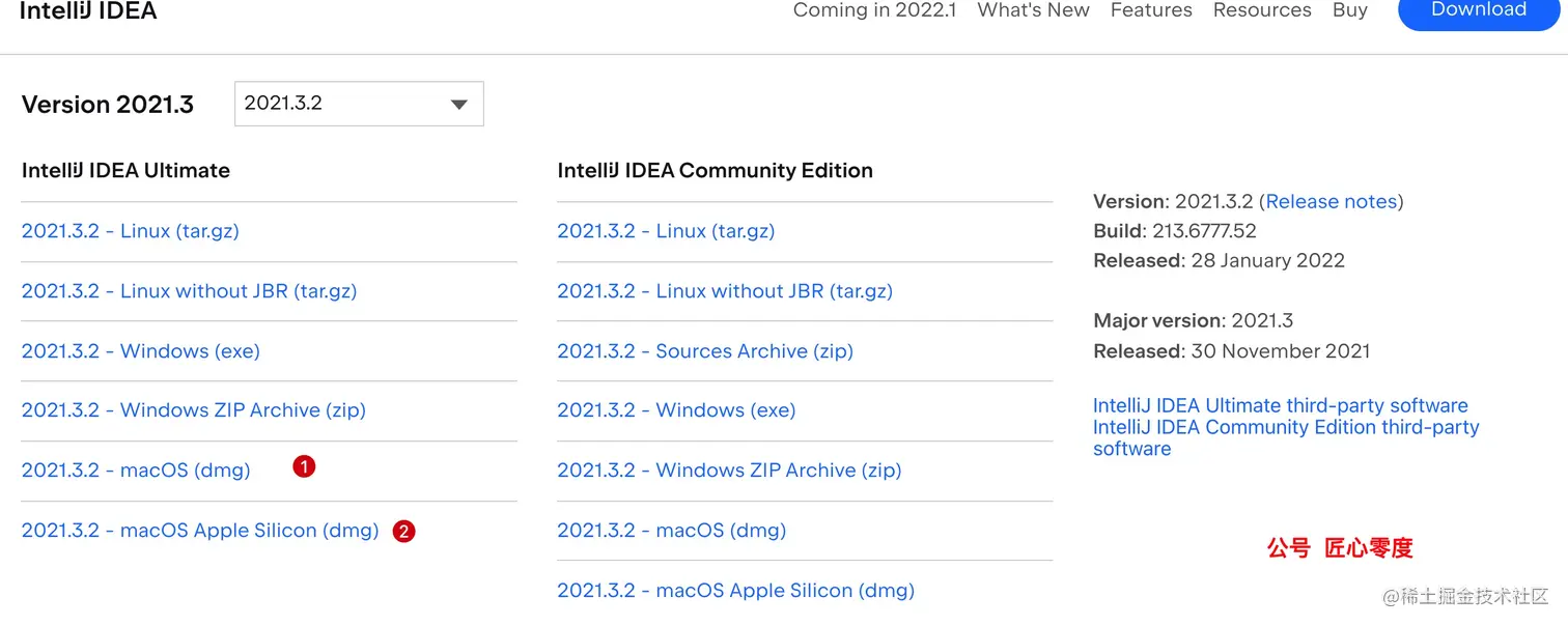 特别提醒: 如果是 M1 芯片的时候需要特别注意,需要下载 M1 版本的,不然会特别卡顿的,如下图,如果是 M1 芯片需要下载 2 而不是 1 ;