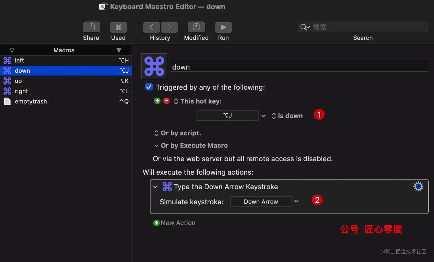 我一开始使用就是习惯了 vim 模式,我不想使用上下左右键,通过这个就把 alt +j 映射为 下键了,并且是全局的;