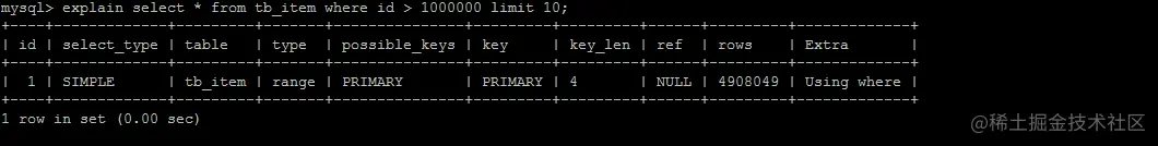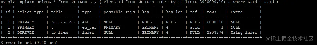比如我们有这样一条语句,select * from tb_item limit 2000000,10 ;