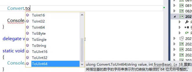 在C#中会经常使用Convert类下的方法进行类型之间的转换工作。