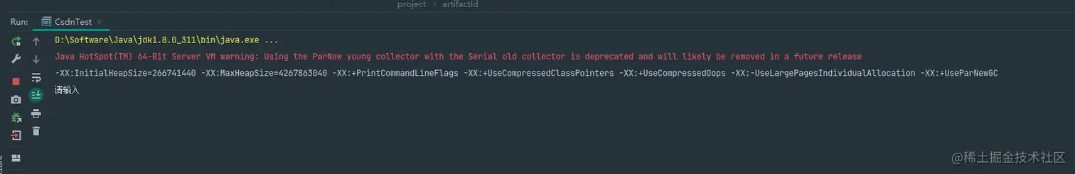 jdk9之后已经移除该垃圾回收器,因此我换为jdk8测试.