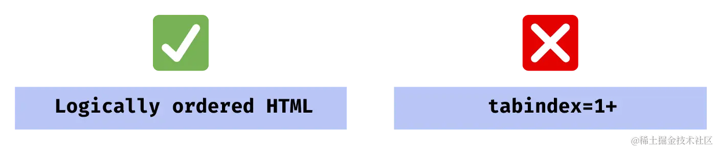 对于键盘用户来说,我们以合乎逻辑的方式构建我们的HTML也是很重要的。当你用标签浏览一个页面时,它应该以一种有意义的顺序突出元素。实现这一目标的最简单方法是以一种有意义的方式来组织你的HTML。