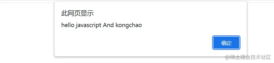 alert("hello javascript And kongchao");