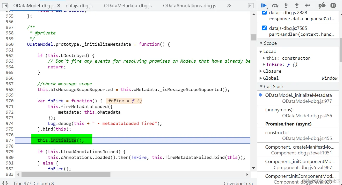 OData 元数据就绪后,执行初始化操作: