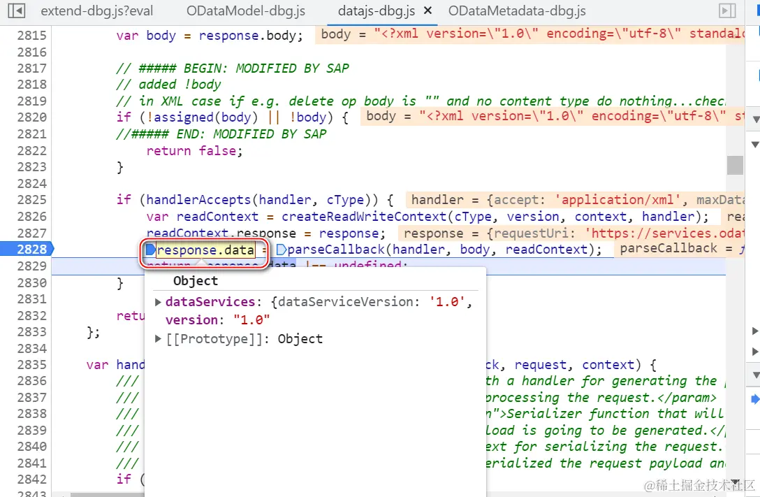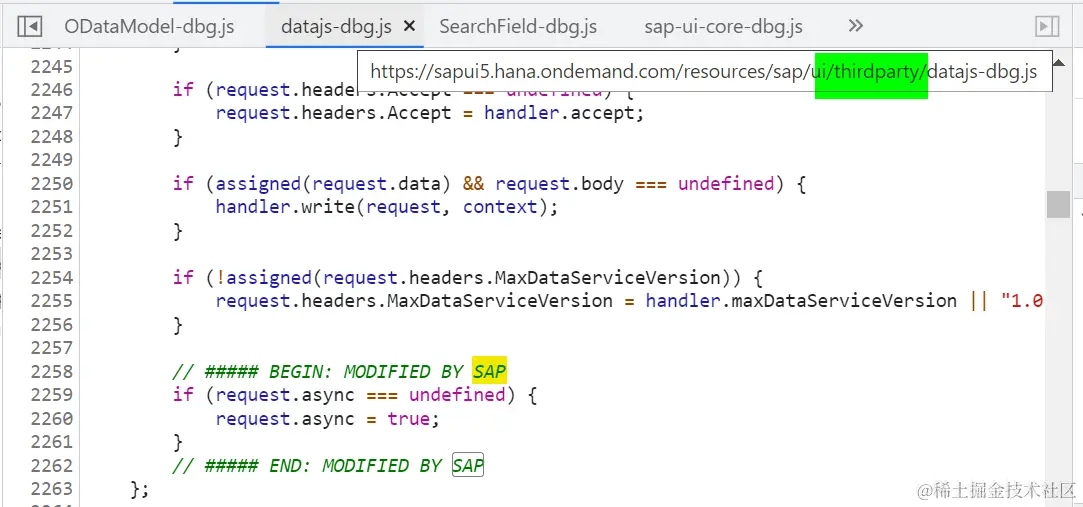 SAP UI5 使用的 datajs.js, 是一种开源的跨浏览器 JavaScript 程序库,可以让开发人员在浏览器环境里消费 OData 服务。