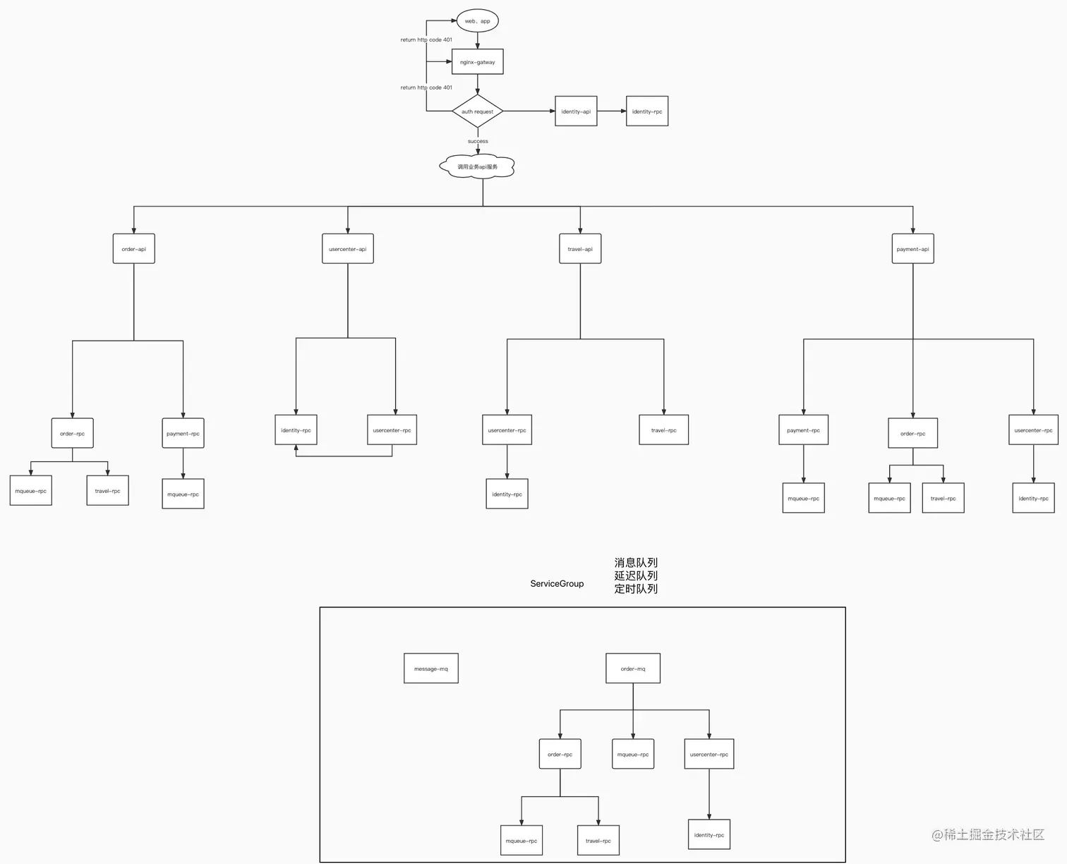 整个项目使用了go-zero开发的微服务,基本包含了go-zero以及相关go-zero作者开发的一些中间件,所用到的技术栈基本是go-zero项目组的自研组件,基本是go-zero全家桶了。
