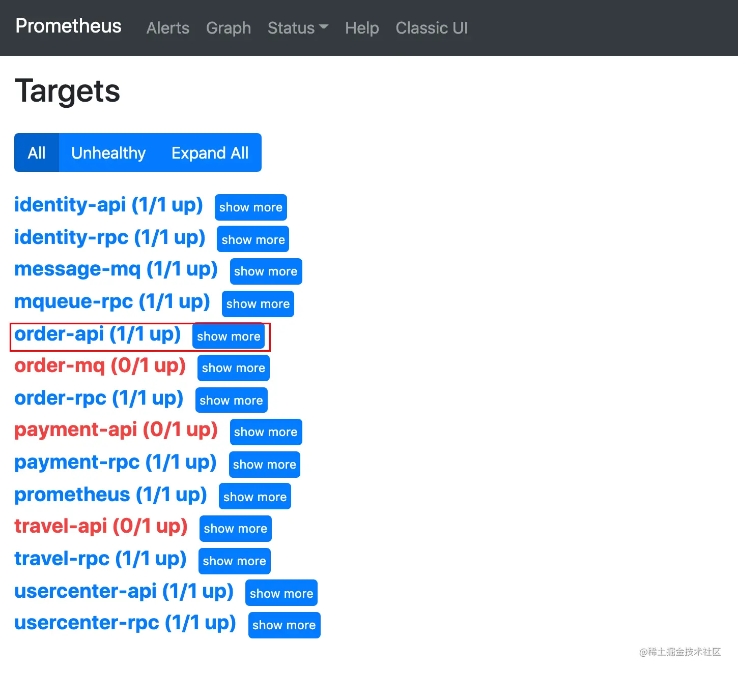 可以看到order-api已经成功了 ,再去prometheus看一下
