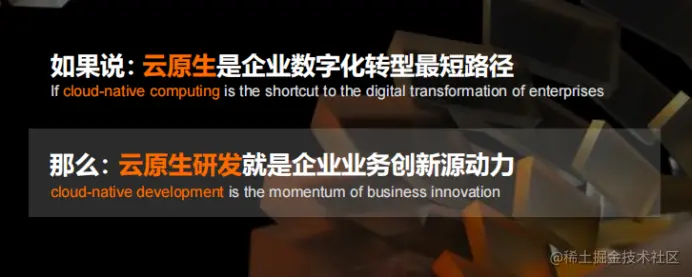 云原生是企业数字化转型的最短路径。在企业数字化转型过程中,首当其冲的缓解是进行业务变革,以及承载业务的应用变革。我们把重点放在研发环节,怎样通过云原生技术让企业在研发测试阶段提效。如果我们通过云原生技术,帮助企业在软件研发环节提效30%,原来需要等待三个月上线的业务系统,现在只需两个月。所以我们提了一个口号:云原生研发,是企业创新的原动力。