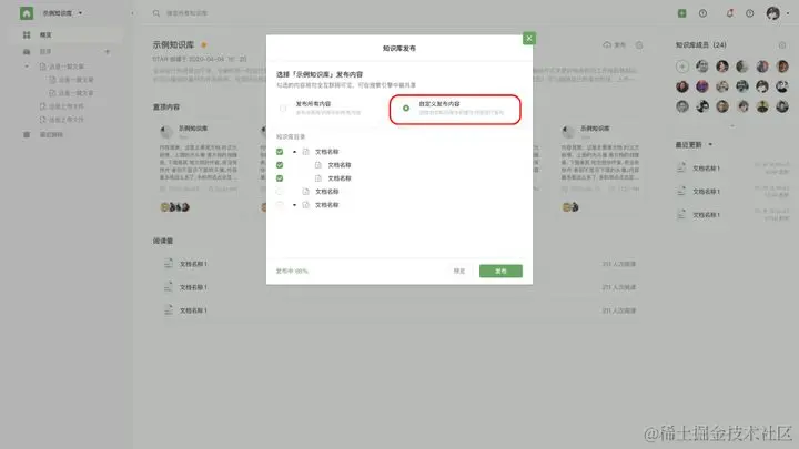 - 选择一个知识库的全部或者部分内容发布至公共网络;