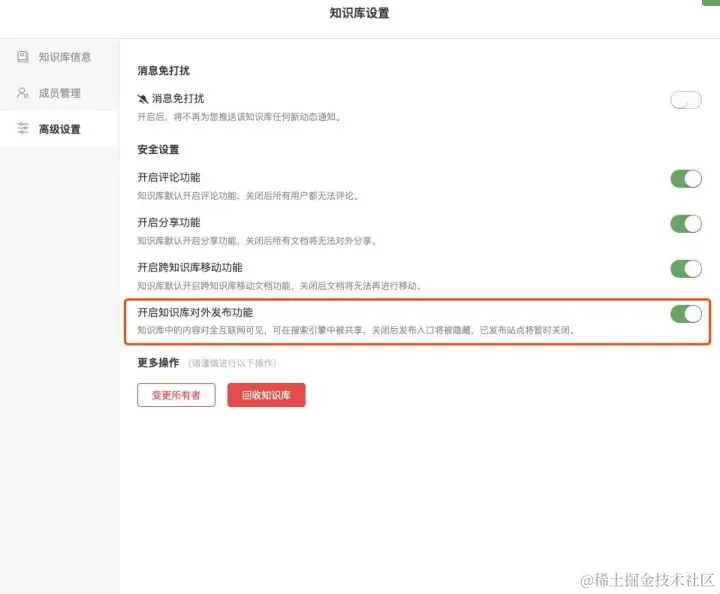 - 获得一个知识库站点公开链接,并分享给企业外的人。