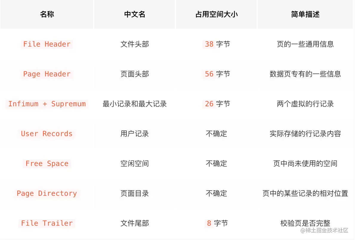 针对各种类型的页都通用描述了一些针对各种页都通用的一些信息(有别于page header)