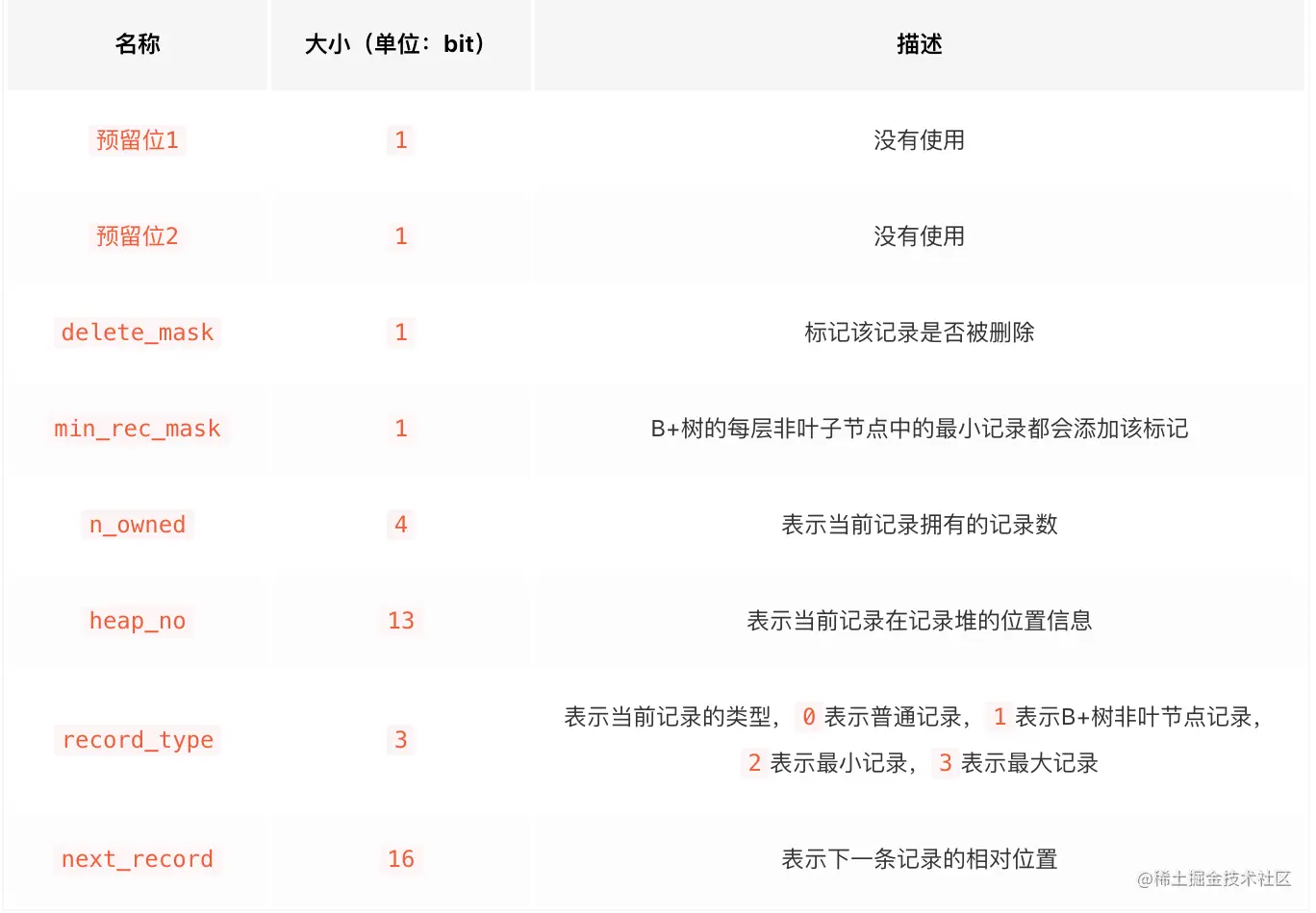 1.表示到下一条按照主键值由小到大的顺序的记录的地址偏移量