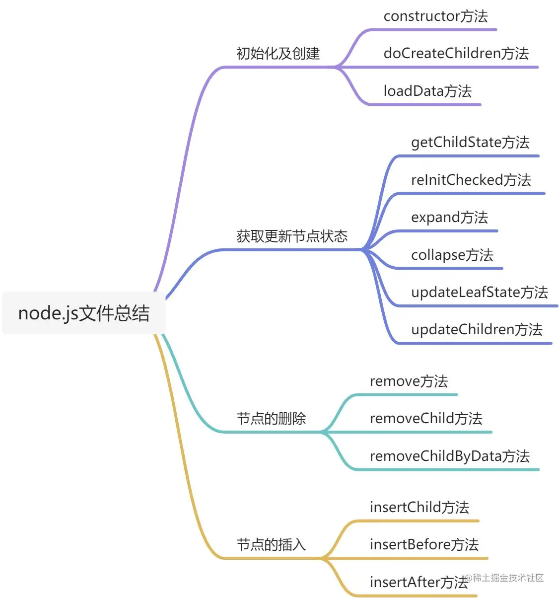 以上就是node.js文件中的全部内容,方法还是蛮多的。主要都是围绕节点的初始化,节点的插入,节点的删除,节点的更新,节点状态的获取和更新来实现的。我们分类总结一下: