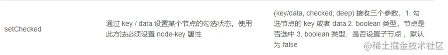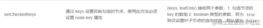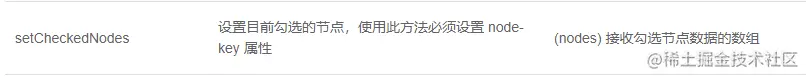setCheckedKeys方法也是用于勾选节点。参数是要勾选的节点的key所组成的数组,遍历数组的每一项作为checkedKeys对象的属性。最后调用_setCheckedKeys方法。顺便看一下文档对这个方法的说明: