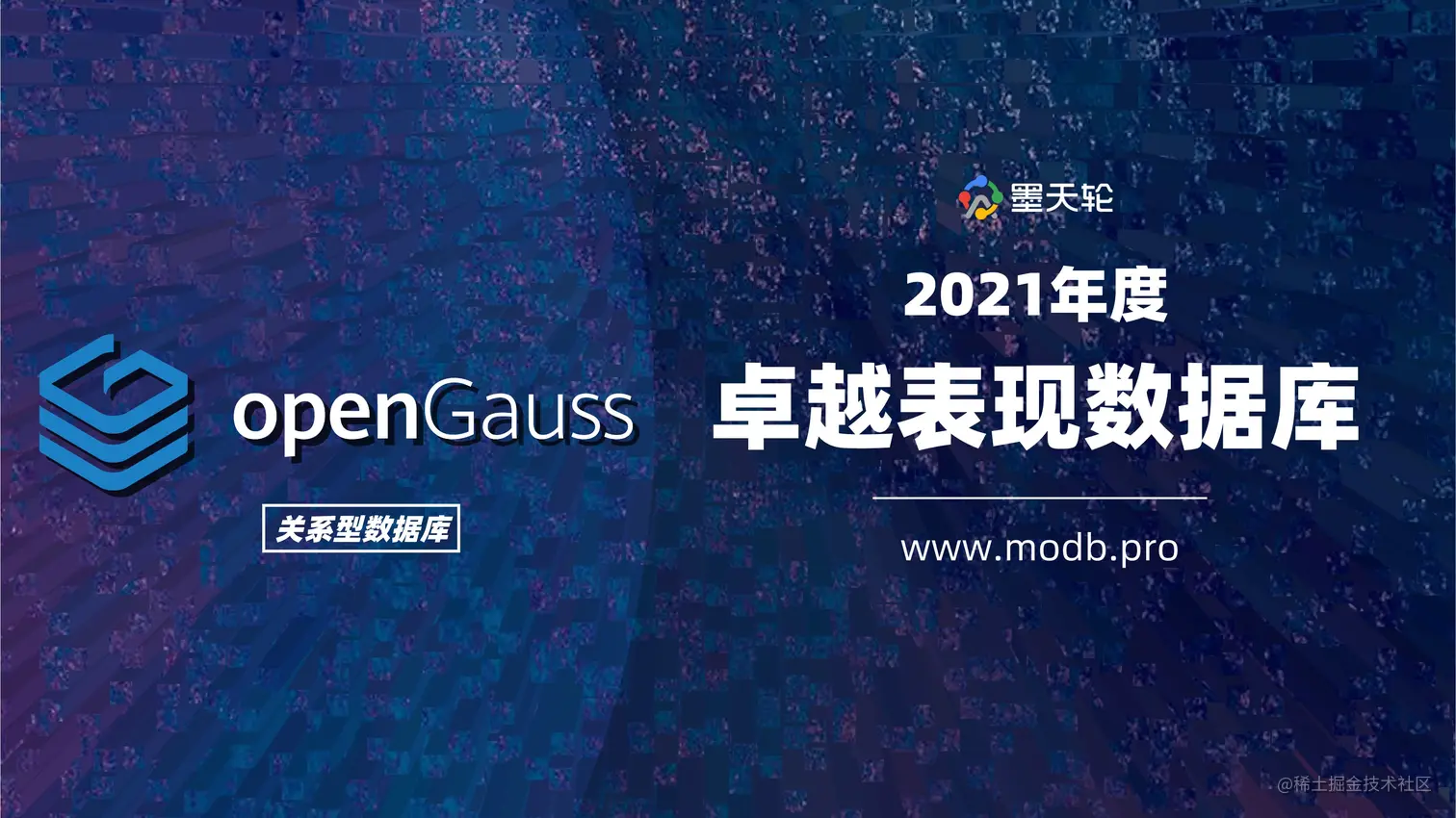 获奖理由: openGauss 斩获了墨天轮国产数据库流行度排行榜上的全年增长分数、复合增长率、半年增长分数 “三冠王”的称号。社区建设上,openGauss已发展20个SIG特别兴趣小组;超过2500名开发者参与技术贡献;在全球81个国家,558个城市下载量超过50万;同时,openGauss在72所高校展开了数据库培训,出版了多本openGauss书籍教材。